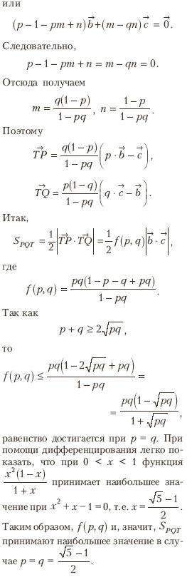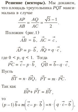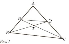 Дан треугольник ABC. Точки P и Q лежат на сторонах AB и AC соответственно, Т-точка пересечения отрезков CP и BQ. Где следует выбрать точки P и Q, чтобы площадь треугольника PQT была наибольшей?