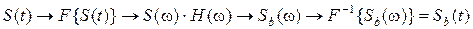 Совпадение формы АЧХ фильтра с амплитудным спектром входного сигнала обеспечивает наилучшее выделение наиболее интенсивных участков спектра сигнала. При этом форма сигнала на выходе фильтра искажается. Однако это не имеет значения, так как задача фильтра в данном случае состоит не в точном воспроизведении входного сигнала, а формировании наибольшего пика выходного сигнала на фоне шума. При фильтрации в частотной области она реализуется в следующей последовательности [3]