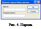 4. Пароль БД – один из уровней защиты информации Microsoft Access. Он не позволяет лицам, не знающим пароль, работать с этой БД в Access, однако сами данные легко могут быть считаны в текстовом редакторе.