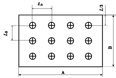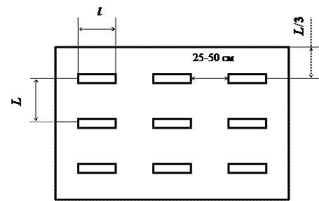 Рис. 4. План помещения и размещения светильников с люминесцентными лампами