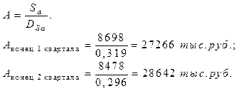 [2] Поскольку в исходных данных приведена среднеквартальная выручка (объем продаж), то и показатель фондоотдачи будет среднеквартальным