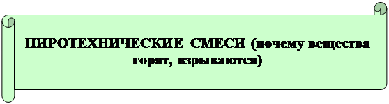 При горении световое излучение может почти отсутствовать, но тепло выделяется всегда. Реакции горения, протекающие в пиротехнических смесях, используются для получения световых эффектов, а также для совершения механической работы – выбрасывания искр и звёздочек, полета ракет и т.п. Очевидно, что движение ракеты связанно не только с выделением тепла, но и с образование газов в результате горения.