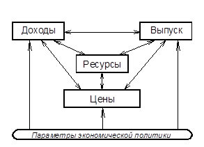 Модель имеет две стороны – реальную производственную и номинальную доходную (рис. 1). Производство и распределение продукции вычисляются в постоянных ценах, доходы и их перераспределение – в текущих.