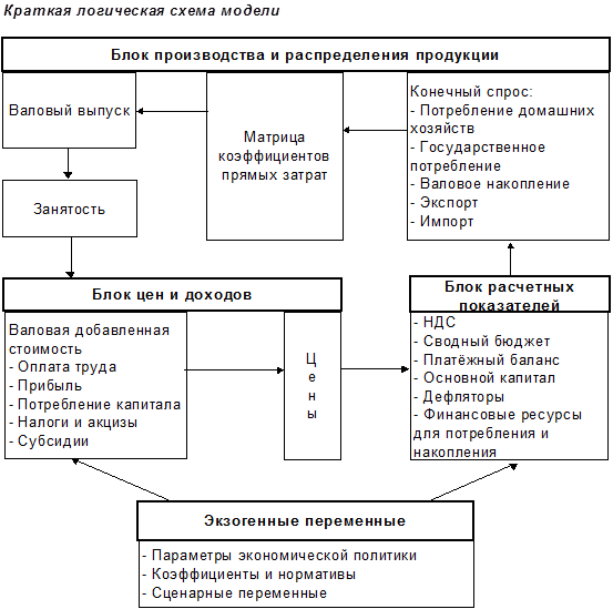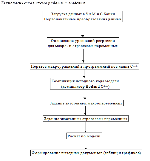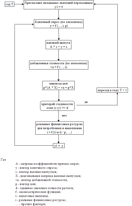 Такой цикл вычислений в модели в пределах года более или менее традиционен для межотраслевых моделей рыночной экономики, которые разрабатываются участниками международного проекта INFORUM [3]