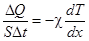 , c - коэффициент теплопроводности, зависящий от свойств вещества. Знак «минус» в (1) указывает на то, что теплопередача направлена в сторону убыли температуры (противоположно градиенту температуры dT/