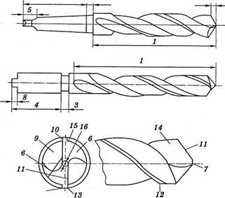 Конструктивные элементы спирального сверла: 1