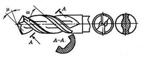 Конструктивные элементы. Сверло состоит из рабочей части, шейки и хвостовика (рис. 5.1). Конический или цилиндрический хвостовик