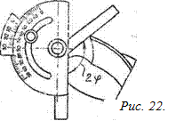 Контроль диаметра сверла по спинке выполняют микрометром. Для сверл диаметром свыше 8 мм это измерение производят штангенциркулем. Контроль диаметра сердцевины осуществляют резьбовым микрометром с коническими или сферическими вставками. За диаметр сердцевины принимают размер, измеренный у заборного конуса сверла. Контроль величины и симметричности угла 2φ при вершине проверяют при помощи универсального угломера (рис.21) и штангенциркуля с ценой делений 0,1 мм.