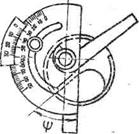 Контроль угла наклона поперечной кромки ψ выполняют универсальным угломером. Для этого неподвижную линейку прибора накладывают на переднюю поверхность сверла вдоль режущей кройки, а подвижную линейку поворачивают до положения, когда она встанет параллельно поперечной кромке (рис. 22).