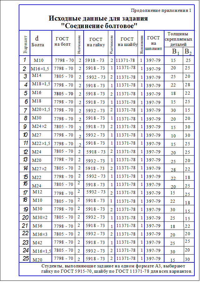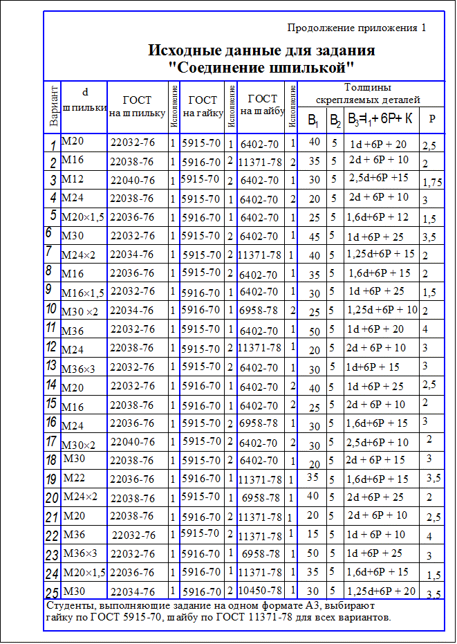изображения шпилечного соединения также следует предварительно выбрать масштаб и пересчитать толщины скрепляемых деталей. Никакие размеры, кроме общей толщины скрепляемых деталей, проставлять не следует.
