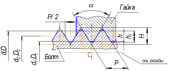На рис. 4 изображён профиль треугольной резьбы в продольном сечении.