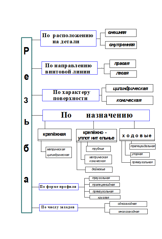а) классификации и стандартизации резьб и резьбовых изделий, их изображения и обозначения;