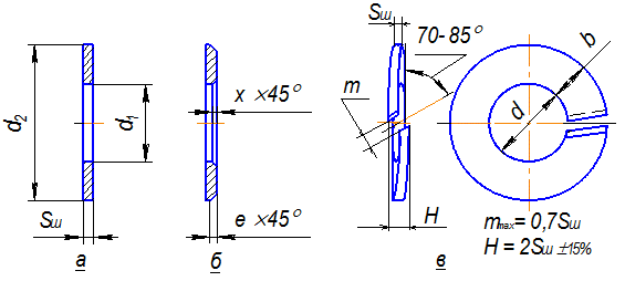 в) толщину шайбы d = 0,15d = 0,15 × 16 = 2,4 мм;