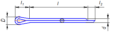 Далее рассчитываем длину шплинта, размер его диаметра определён диаметром отверстия в болте. Размеры шплинта помещены в таблицах стандартов на гайки прорезные, выбираются в соответствии с d болта.