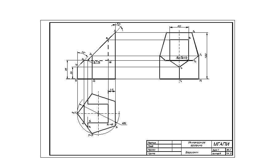 12. Все линии чертежа должны быть черными: линии видимого контура - сплошные толстые; линии построения, выносные, размерные и линии штриховки - сплошные тонкие.