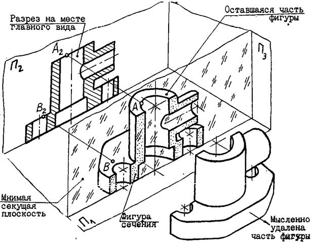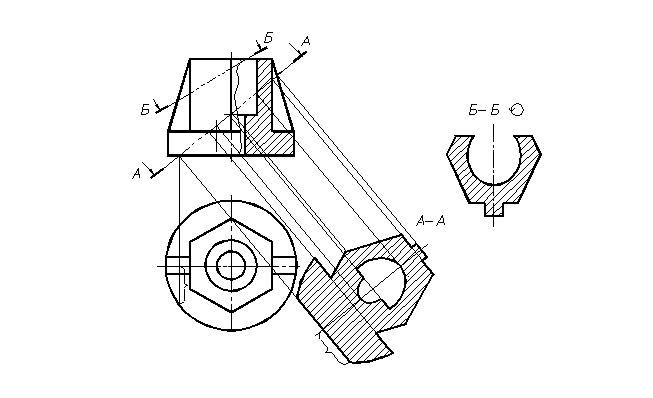 следует выбирать так, чтобы натуральный вид сечения был расположен на свободном месте поля чертежа. При недостатке места допускается частичное наложение фигуры сечения на имеющиеся изображения.