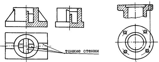очертаниям, наносят со стороны вида, а размеры внутренних очертаний – со стороны