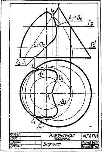 ). Две другие проекции линии сечения строят из условия принадлежности ее заданным поверхностям.