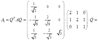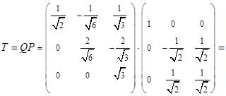 Теперь составляем ортогональную матрицу, столбцами которой являются векторы , ,