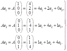1) Строим матрицу оператора в стандартном базисе пространства . Находим образы базисных векторов: