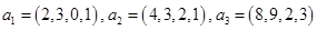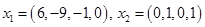 а) третий столбец векторов пропорционален (равен) соответствующей части первого, а четвертый - соответствующей части второго. Выбрасываем без сожаления третий и четвертый столбцы.