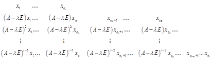 Таким образом нами «попутно» найдена преобразующая матрица Е, приводящая данную матрицу к ЖНФ
