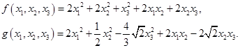 Рассмотрим две вещественные квадратичные формы и . Можно ли заданные формы единым преобразованием привести к каноническому виду? Эту задачу помогают решить результаты, относящиеся к линейным операторам. Мы рассмотрим случай, когда одна из этих квадратичных форм, например , является положительно определенной. Тогда выполняем сначала преобразование , которое приводит форму к нормальному виду (сумме квадратов переменных). При этом форма перейдет в новую форму от переменных . На следующем шаге выполняется ортогональное преобразование , которое приводит форму к каноническому виду. Квадратичная форма при этом не изменится, так как ее матрица является единичной, а .