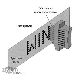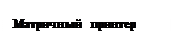 ) —принтер, формирующий изображения символов с помощью отдельных маленьких точек. Печатающая головка матричного принтера обычно содержит от 9 до 24 печатающих иголочек, которые выборочно ударяют по красящей ленте, создавая изображение на бумаге, расположенной за красящей лентой. Для печати на матричном принтере используется рулонная или фальцованная перфорированная бумага. При печати на отдельных листах на большинстве матричных принтеров требуется ручная подача. Для автоматической подачи отдельных листов используется опциональный автоподатчик (CSF, Cut Sheet Feeder)Матричные принтеры постепенно выходят из употребления, поскольку они очень медленно и шумно работают, а копии получаются низкого качества. Однако себестоимость печати одной копии на матричном принтере низкая, к тому же матричные принтеры позволяют делать до трех копий одновременно.