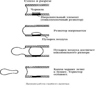 Струйные принтеры работают по принципу “шприца”, а расходным материалом для них являются чернила. Формируя изображение, печатающая головка принтера передвигается вдоль листа бумаги и выбрызгивает мелкие капли чернил разных цветов.Струйные принтеры, в основном, используются для незначительных объемов бытовой цветной печати – лучше всего они подходят для печати цветных фотографий или иллюстрированных документов. Однако при больших объемах печати со значительным потреблением краски они становятся невыгодными в использовании.На специальной бумаге струйные принтеры позволяют печатать изображения очень высокого качества. Такие принтеры для профессиональной работы с цветными изображениями называют фото-принтерами. Некоторые из них могут печатать изображения прямо с цифровой камеры, а некоторые модели имеют цветной жидкокристаллический экран, позволяющий просмотреть изображение перед печатью.