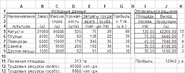 г) в качестве критерия оптимальности принимается максимум получаемой от производства овощей прибыли.