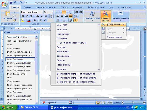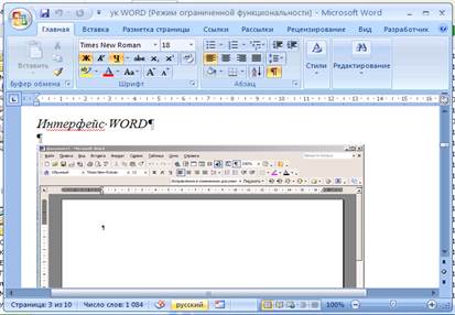 В редакторе имеется несколько режимов работы. Режимы можно выбрать либо с помощью вкладки Режимы просмотра документа либо кнопок, находящихся под горизонтальной линейкой прокрутки.