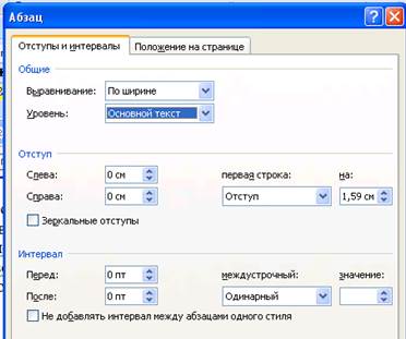 3. абзац - последовательность символов, заканчивающаяся символом «конец абзаца». Параметры абзаца: отступ слева, справа, сверху, снизу, в первой строке, межстрочное и межсимвольное расстояние, способы выравнивания текста