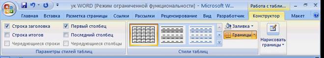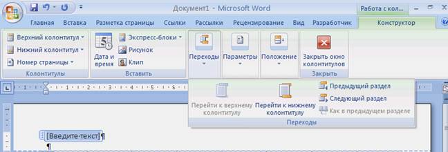 4. появляется вкладка Работа с колонтитулами. Конструктор