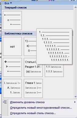 4. Регулирование уровня списка производится с помощью клавиш ТАВ (увеличить отступ) и SHIFT + ТАВ (уменьшить отступ) или с помощью пиктограмм (закладка Главная,