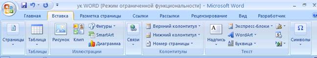 b. Основное меню содержит названия вкладок, каждая из которых содержит меню групп, состоящих из пиктограмм.