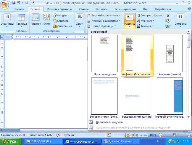4. выбрать шаблон или кнопку Нарисовать надпись