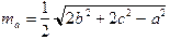 . Медианой называется отрезок, соединяющий любую вершину треугольника с серединой противоположной стороны. Медиану, соединяющую вершину треугольника А с серединой стороны а, можно найти по формуле: