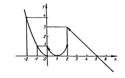 Функция является неэлементарной, так как на разных интервалах представлена различными аналитическими выражениями. Эта функция определена на интервалах , где она задана непрерывными элементарными функциями. Внутри каждого интервала указанные элементарные функции не имеют точек разрыва, следовательно, разрыв возможен только в точках перехода от одного аналитического выражения к другому, т.е. в точках и .