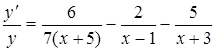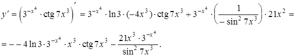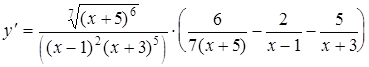 Используя метод логарифмического дифференцирования, вычислить производную функции