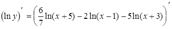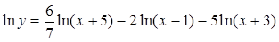Применим метод логарифмического дифференцирования. Для этого предварительно прологарифмируем обе части данного выражения и используя свойства логарифма преобразуем правую часть.