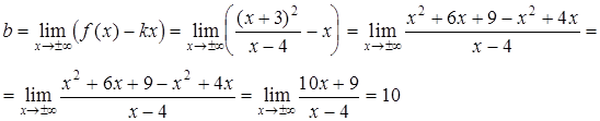 б). Находим наклонные и горизонтальные асимптоты (горизонтальные асимптоты являются частным случаем наклонных асимптот) ,