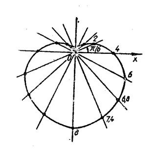 Построив найденные точки в полярной системе координат (отложив угол от полярной оси и вдоль полученной прямой расстояние r