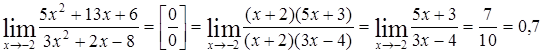 Имеем неопределенность вида . Для ее раскрытия разложим числитель и знаменатель на множители и сократим на общий множитель , который при не равен нулю. В результате неопределенность будет раскрыта.