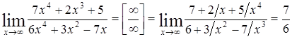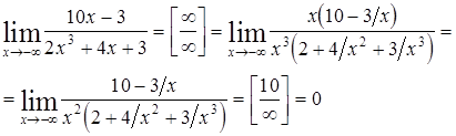и учитывая, что величина обратная бесконечно большой величине есть бесконечно малая величина, раскроем исходную неопределенность, либо вынести переменную в наибольшей степени в числители и знаменатели дроби и сократить на наибольшую степень.