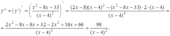 7. Исследуем график функции на выпуклость, вогнутость и определим точки перегиба. Для этого найдем вторую производную функции.