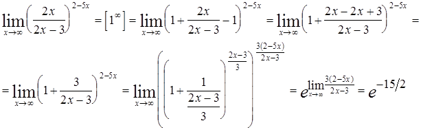 Имеем неопределенность вида . Для раскрытия этой неопределенности воспользуемся вторым замечательным пределом .