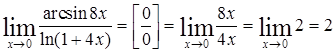 : Имеем неопределенность вида . Для ее раскрытия воспользуемся теоремой о замене бесконечно малых функций эквивалентными им бесконечно малыми. Так как и , то