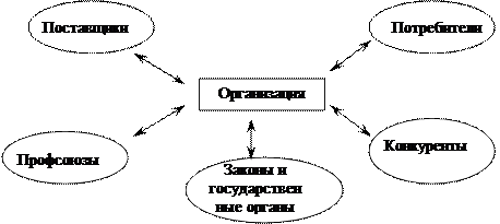 Многие законы и государственные учреждения влияют на организации. Как известно, государство в рыночной экономике оказывает на организации как косвенное влияние, прежде всего через налоговую систему, государственную собственность и бюджет, так и прямое — через законодательные акты. [13, с.100]