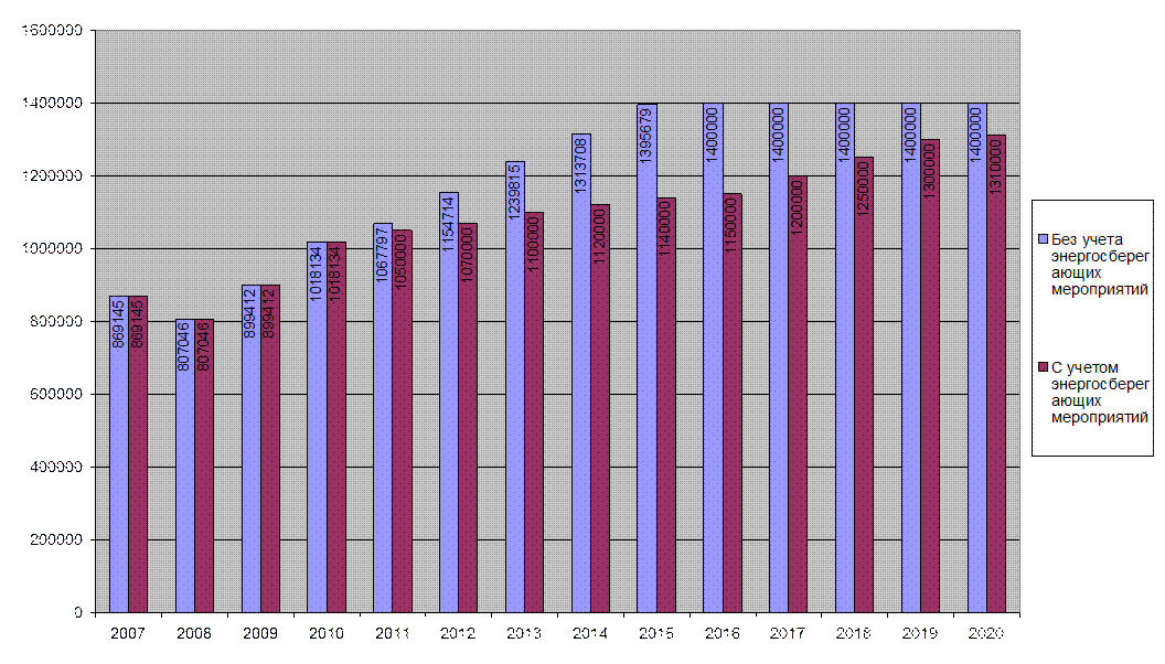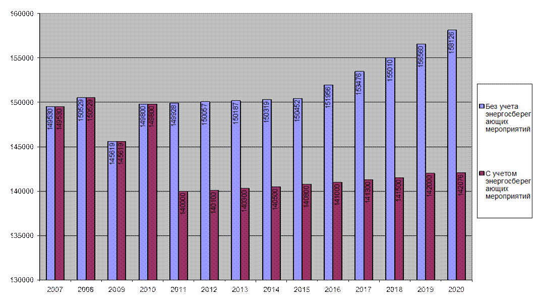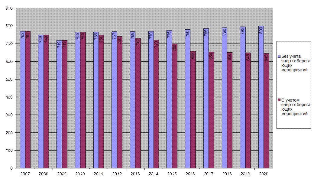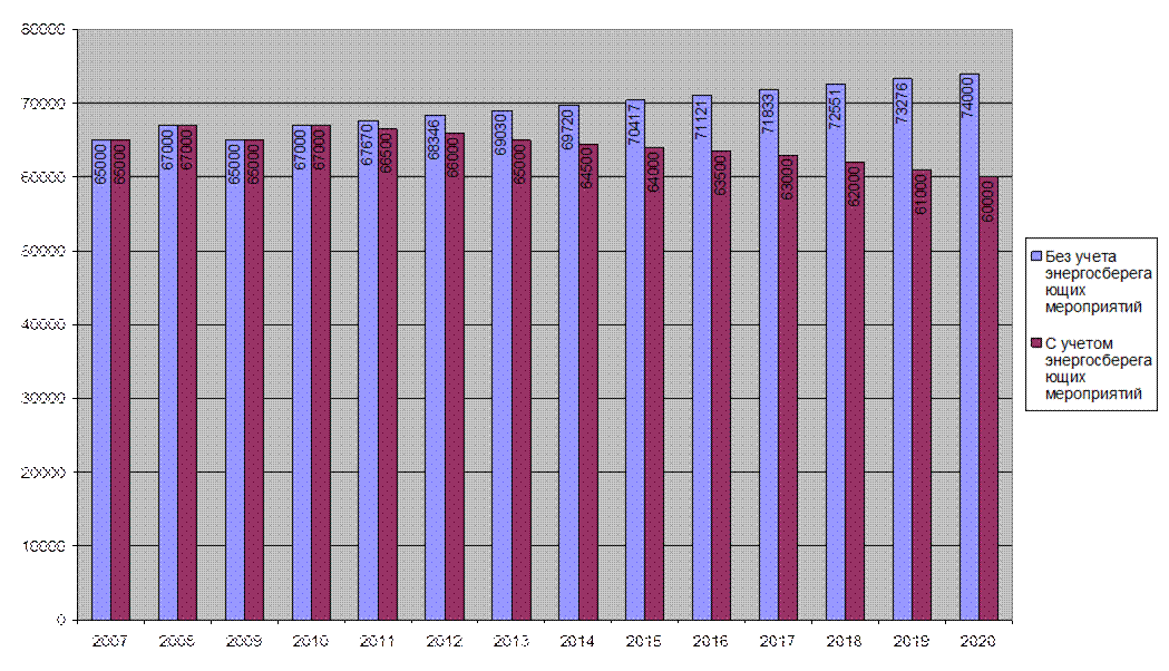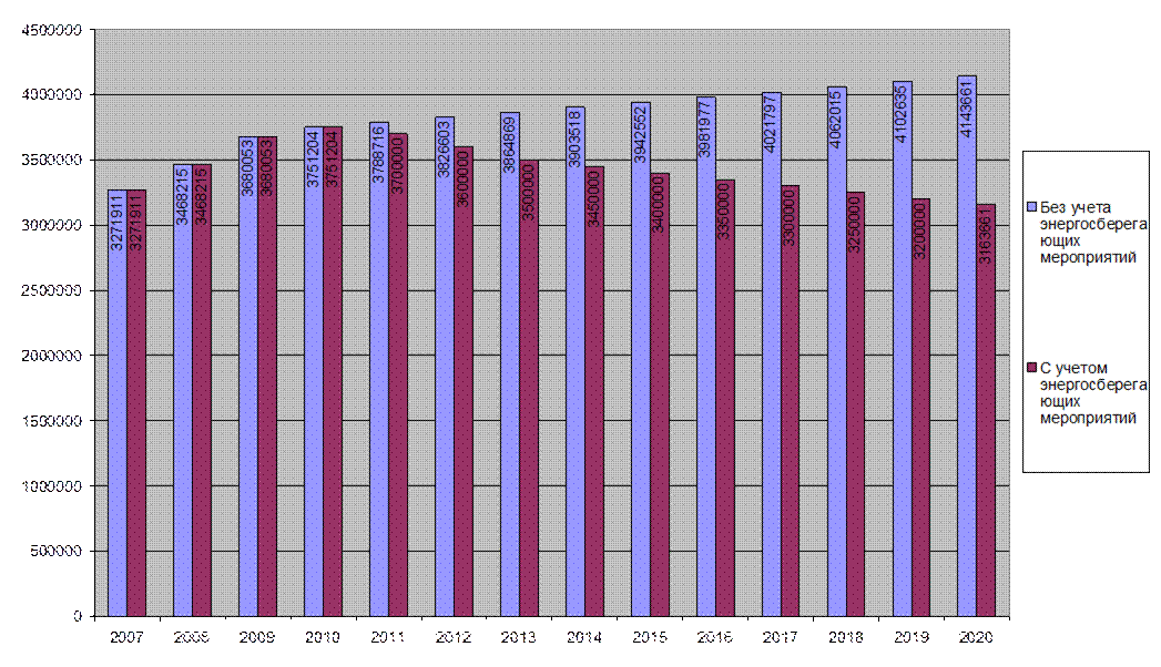 Приложение № 3. № 4. Структура и прогноз потребления энергетических ресурсов на территории Обоянского района Курской области к 2020 году без учета энергосберегающих мероприятий