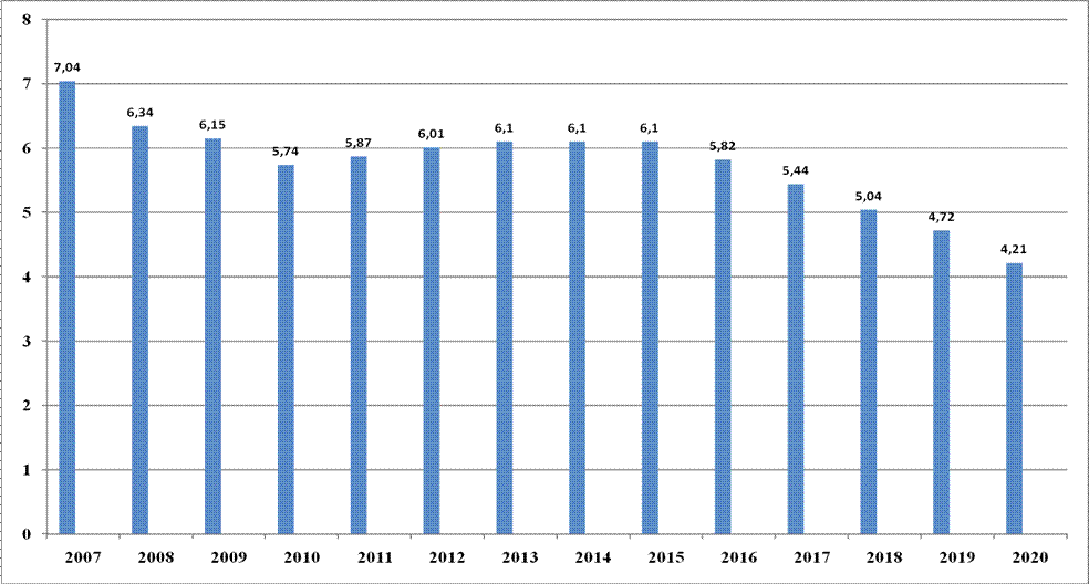 Одним из основных интегральных показателей эффективности использования энергетических ресурсов в субъектах Российской Федерации, в том числе и в Обоянском районе, является энергоемкость валового регионального продукта. Снижение энергоемкости ВРП и создание на этой основе условий для обеспечения устойчивого развития экономики и повышения ее конкурентоспособности – один из важнейших приоритетов в деятельности органов муниципальной власти Обоянского района.